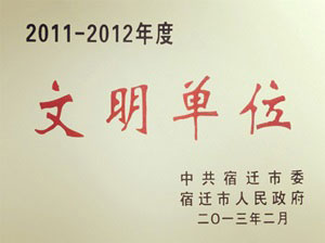 集團先后獲得宿遷市精神文明單位、宿遷市先進基層黨組織、宿遷市工人先鋒號、宿遷市“五四”紅旗團委、江蘇省青年學(xué)習(xí)社、江蘇省“五四”紅旗團委、江蘇省和諧勞動關(guān)系模范企業(yè)、宿遷市職工文化建設(shè)示范單位、全國職工書屋、江蘇省價格誠信單位等榮譽稱號。